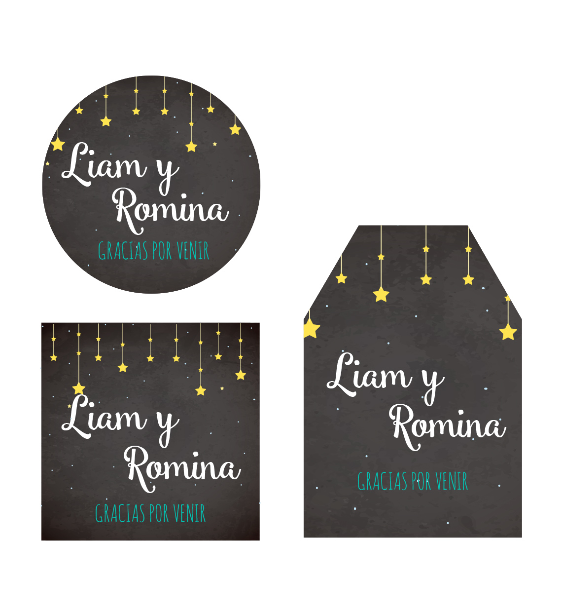 Tarjeta Agradecimiento Baby shower estrellas. Agrega una tarjeta de agradecimiento al detallito que tienes para tus invitados. Tu eliges el diseño y el tamaño que necesites. Se puede usar como sticker o perforando el centro, dale el uso que quieras.
